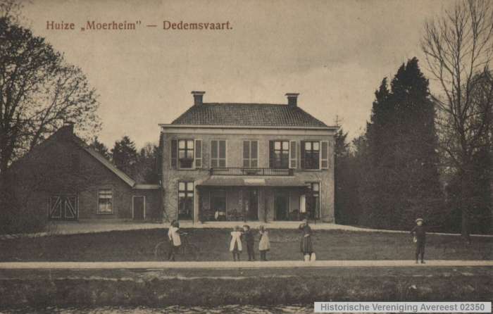 | Omschrijving | : | Huize "Moerheim" te Dedemsvaart is in 1848 gebouwd in opdracht van grootgrondbezitter Jonkheer G.R.C. van Swinderen, woonachtig in huize Rijs te Balk in Friesland. De eerste bewoner van dit pand was Coenraad Willem Baron van Dedem, zoon van de stichter van het kanaal de Dedemsvaart en burgemeester van de gemeentes Nieuwleusen en Avereest. Kort nadat hij met zijn echtgenote zijn intrek in deze woning had genomen overleed zijn vrouw in het kraambed met haar kind. Na het overlijden van zijn vader in 1851 vertrok hij in 1852 naar Nieuwleusen om zijn intrek te nemen in huize de Rollecate. Vervolgens vestigde Arnoldus Nierhoff zich in dit pand. Hij had sinds 1844 een internaat (middelbare school) aan de Kalkwijk en kon de extra ruimte in dit pand goed gebruiken. Na het vertrek van Nierhoff in het begin van de zestiger jaren verkocht Van Swinderen het pand aan Jan Daniel Ruijs. Zijn zoon de arts Theodorus Ruijs (1869-1934) woonde hier zijn hele leven. Na diens overlijden vestigde de huisarts Arnold Pieron (1903-1993) zich hier. Hij werd in 1947 opgevolgd door de arts Gerard Goedhard die in 1951 plaats maakte voor Herman Grolman (zie foto: 06687). |